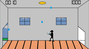 Use the mouse (recommended) or left/right arrow keys to move your character back and forth. Position the bucket underneath falling rain drops to catch them. The bucket can hold three drops of water. Empty the bucket by pressing the right mouse-click or spacebar to empty the bucket, but only do so outside! If any water touches the floor indoors, either by missing a drop or emptying the bucket inside, the game is over.